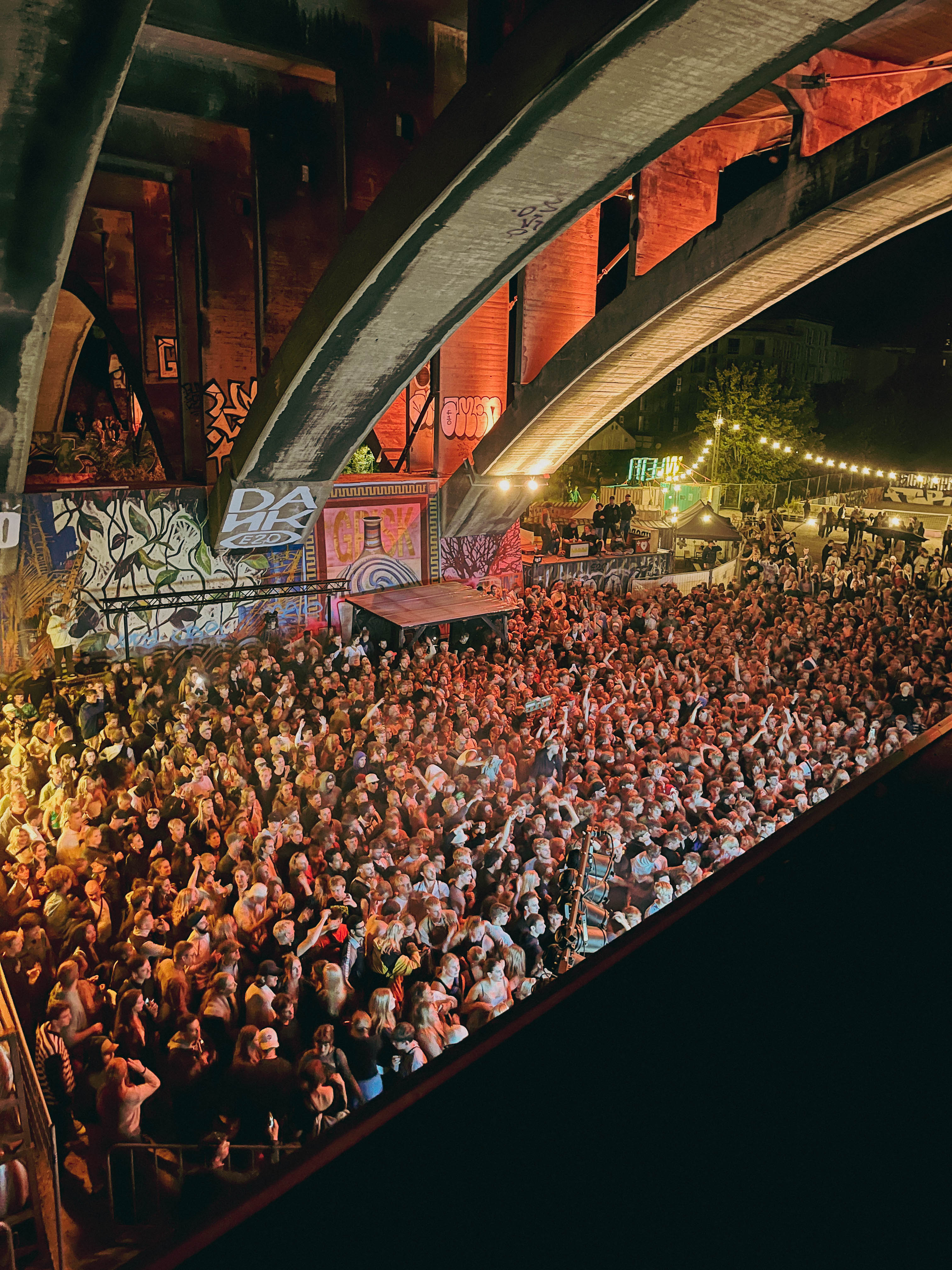Vi inviterer en række kunstnere ind til at lave værker og performances på området omkring, og i, Volume Village til en tværkunstnerisk festival, der forener urban musik og visuel kunst, med Ringgadebroens karakteristiske flader.